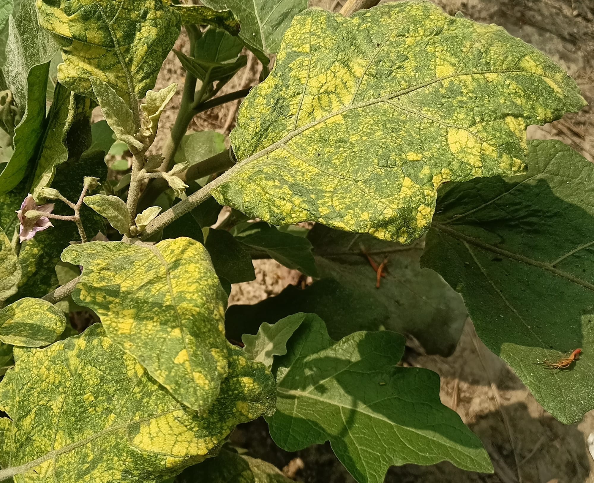 One season, I noticed something unusual on my eggplant leaves. They started showing random yellow and green patchy patterns all over them.